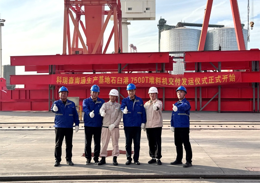 On December 9th, Jiangsu PG Slot Crane Machinery Co., Ltd. (hereinafter referred to as the Company) and Jiaozuo Kereisen Heavy Machinery Co., Ltd. (hereinafter referred to as Kereisen) held a shipping ceremony at Grate Port. Chairman Wang Jianchun and Vice General Manager Gu Yucheng warmly received the delegation led by Chairman Yao Guanghui of Koreson. It is reported that this 7500T stacker is one of the key equipment for the process transformation of Shijiu Port East Area in Rizhao Port, Shandong Province.
